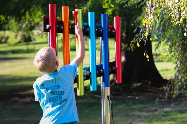 Rainbow Bongos er perkussive, og både Rainbow Metallophone og Rainbow Chimes er innstilt til den pentatoniske skalaen for å skape en trygg musikalsk havn for å utforske nye lyder ute i det fri.