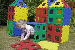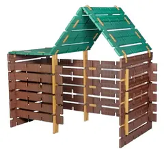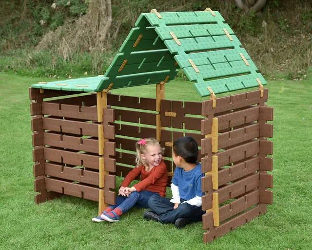 Delene er enkle å sette sammen. Hytten kan brukes både inne og ute.