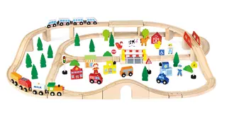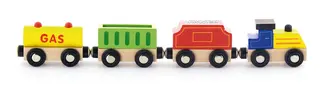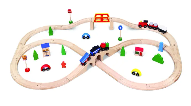 Togsett i tre som er enkelt å bygge og som gir mange timer med lek og glede. Barnet får utviklet sin forestillingsevne, resonneringsevne, motorikk og hånd-/øyekoordinasjon.