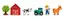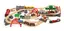 Inneholder 49 deler, blant annet skinner med bru, tunnel, godstog, personvogn, biler og skilt.