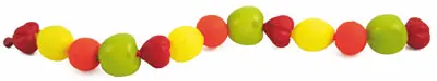 20 frukter som kan tres til kjede. Fin til å lære navn på de ulike fruktene. Leveres i plastboks.