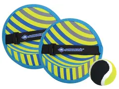 Skatch-up er et morsomt gripe- og kastespill. Gripeplaten er kledt i borrelås slik at ballen blir hengende. Festestropp med borrelås på baksiden. Sett med 2 gripeplater og 1 ball.
