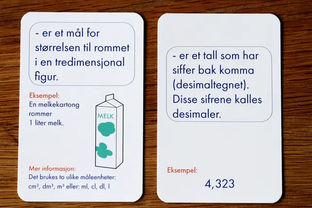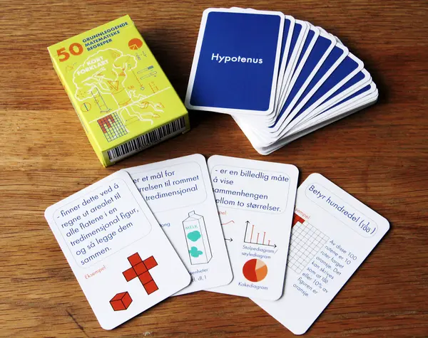 Ved å beherske grunnleggende begreper i matematikk, er man sterkere rustet til å kommunisere, forstå og løse matematiske utfordringer. Kortstokken inneholder korte og enkle forklaringer på 50 grunnleggende begreper, med eksempler.