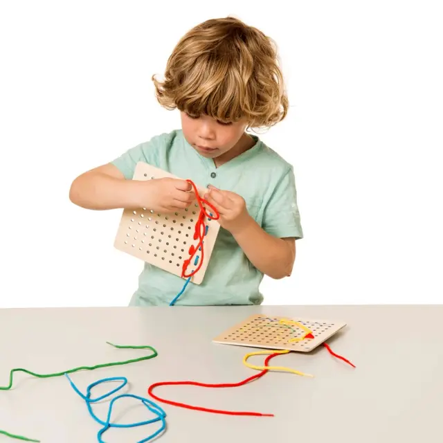 Bord med formspendte ben i heltre bjørk. Bordplate i støydempende linoleum.