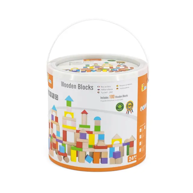 Oppdag gleden ved kreativ lek med våre tidløse byggeklosser! Denne pakken inneholder 100 klosser i ulike former og størrelser, med sterke farger som appellerer til de små byggmersterne. Laget av tre, som er slitesterkt og sikrer langvarig bruk.