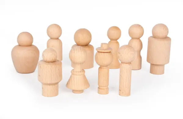 Trefigurer i forskjellige former laget av tre. La barna lære om likheter og forskjeller, eller kompletter byggeleken. Kan dekoreres eller brukes naturlige.