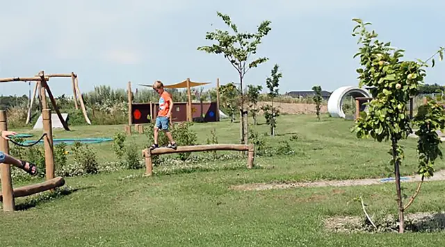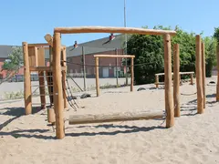 Klassisk balansestolpe som kan benyttes alene eller som del av en hinderløype. Å bevege seg på stolpen trener motorikk, koordinasjon og balanse, og er man flere trenes man i det sosiale spillet også. Robinia er naturlig vedlikeholdsfritt og tåler mengder av barn og elendig vær.