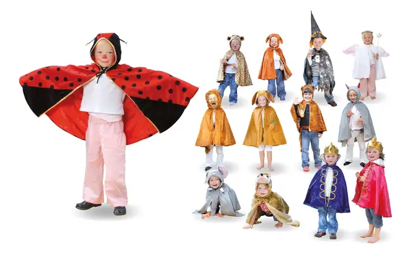 Barna kan velge om de vil være marihøne, leopard, tiger, løve, kanin, elefant, pinnsvin, ulv, hund, trollmann, konge, dronning eller fe.