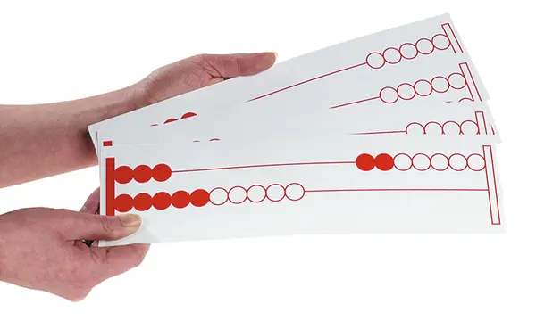 Disse demonstrerer tall opp til 20. På baksiden av hvert kort står antall kuler på fremsiden, slik at læreren alltid kan vite hva som vises fram til elevene.