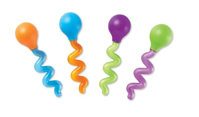 Fargerike pipetter som setter en morsom vri på vannlek og introduserer barna for grunnleggende vitenskapelige prinsipper. Barna øver på pinsettgrepet og styrker musklene i hånden mens de utforsker overføring av vann, årsak/virkning og volum. Bruk for eksempel beholdere med ulike farger og utforsk fargelære. Sett med fire pipetter.