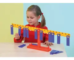 Med vekten kan man veie alt opp til 1 kg og lære å sammenlikne forholdet mellom volum og vekt. Inneholder 11 lodd i metall og 14 lodd i plast, i tillegg til selve vekten.
